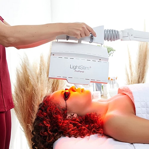 LED LightStim therapy is similar to red light therapy as both use red light to address skin concerns. However, LightStim also incorporates blue light, specifically targeting acne by eliminating acne-causing bacteria on the skin’s surface.